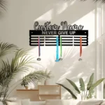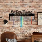 Personalizowany wieszak na medale „Never Give Up” – Custom Name
