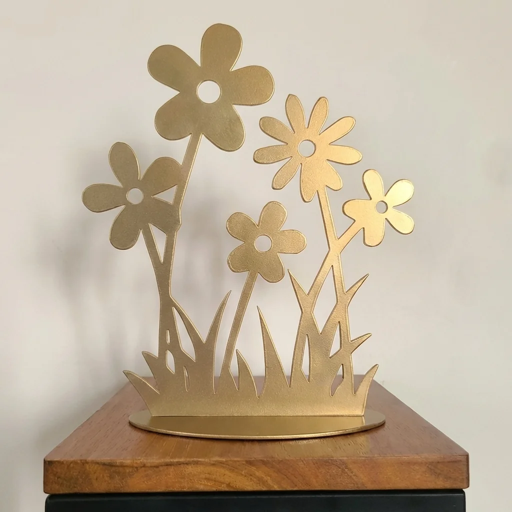 Polne Kwiaty to nowoczesna, wolnostojąca sylwetka ogrodowa z metalu inspirowana formą łąkowych roślin. Idealna na taras, patio i przy ścieżkach ogrodowych jako lekki, graficzny akcent. Rozmiary: 17×20 cm, 26×30 cm, 34×40 cm. Warianty: corten, czarny, biały, złoty lub stal nierdzewna szczotkowana. Darmowa dostawa na terenie Polski.