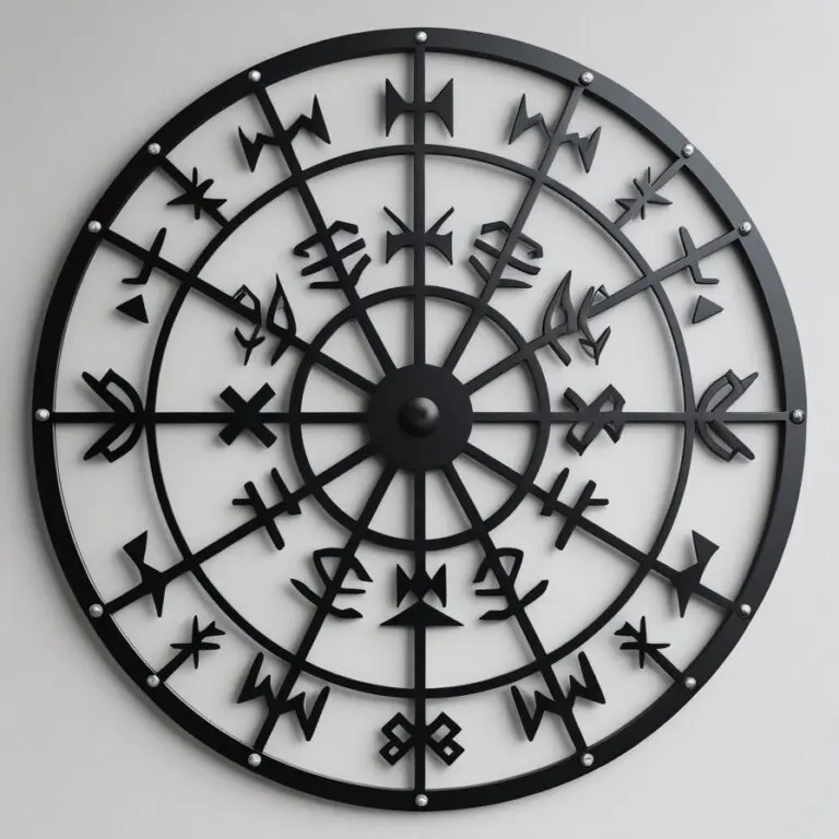 Rune Circle C to dekoracyjny panel ścienny inspirowany symbolami runicznymi i mistycznymi kręgami. Geometryczny układ znaków w kole tworzy wyrazisty, a jednocześnie elegancki akcent – idealny do wnętrz nowoczesnych, industrialnych i minimalistycznych.