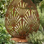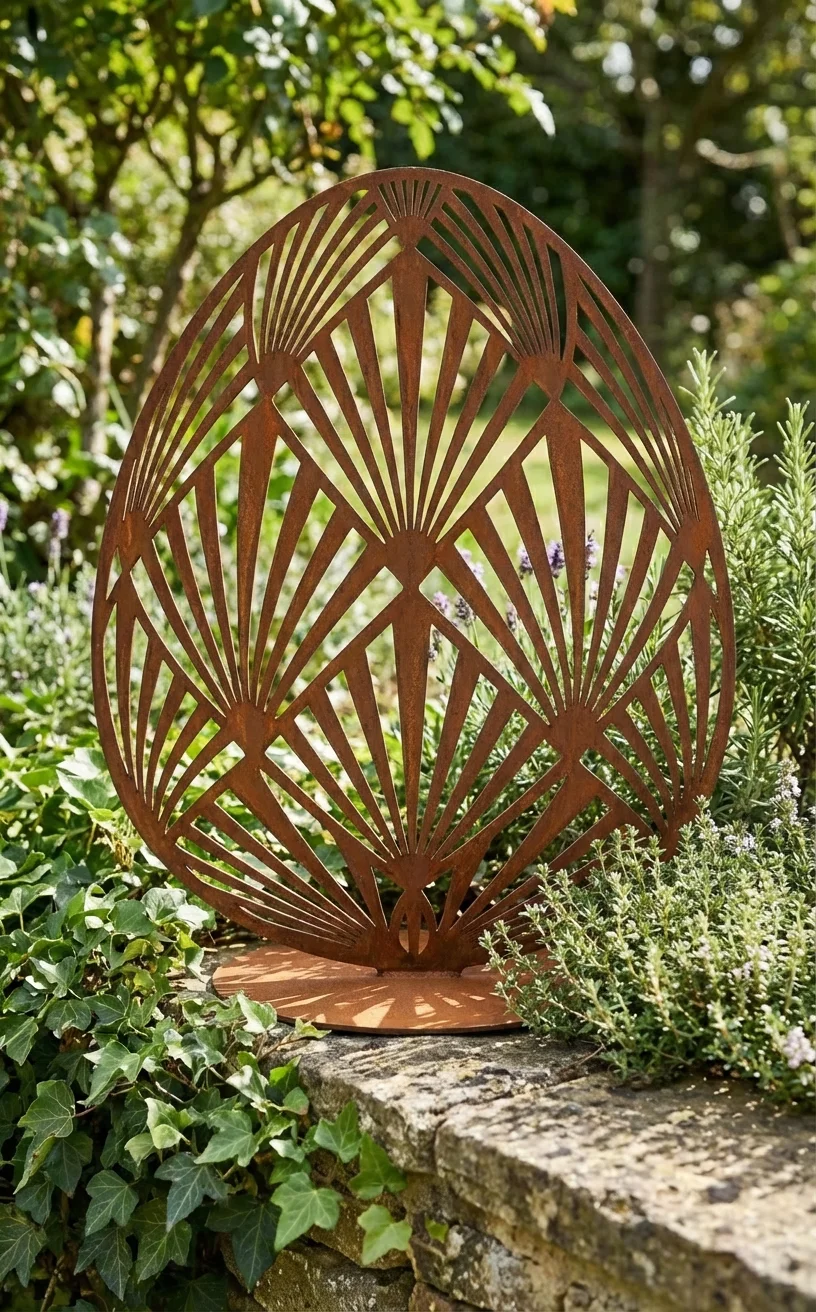 Rzeźba z metalu art deco jajko „Art Deco Jajo” – wolnostojąca dekoracja o geometrycznym, ażurowym wzorze inspirowanym stylem art déco. Idealna do salonu, holu i przestrzeni premium (hotel, SPA). Rozmiary: 11×15 cm, 15×20 cm, 18×25 cm. Wykończenia: corten (rdzawy), czarny, biały, złoty lub stal nierdzewna polerowana/szczotkowana. Darmowa dostawa na terenie Polski.