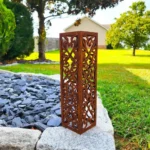„Serce Ogrodu” to metalowa kolumna ogrodowa z symetrycznym, ażurowym ornamentem – romantyczny, reprezentacyjny akcent do ogrodu, tarasu i stref wejściowych. 4 rozmiary: 15×15×40, 20×20×70, 25×25×90, 25×25×110 cm. 5 wariantów kolorystycznych: corten (rdzawy), czarny, biały, złoty, stal polerowana/szczotkowana. Darmowa dostawa.