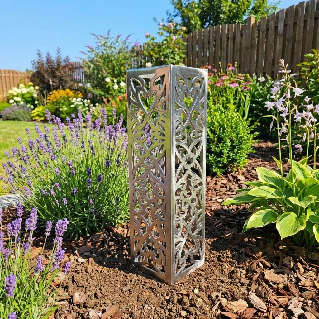 „Serce Ogrodu” to elegancka, metalowa kolumna ogrodowa z dekoracyjnym, ażurowym wzorem inspirowanym symetrią, łukami i klasyczną architekturą ogrodową. Zaprojektowana jako reprezentacyjny punkt kompozycji, doskonale sprawdza się w ogrodach przydomowych, strefach wejściowych oraz aranżacjach tarasowych.