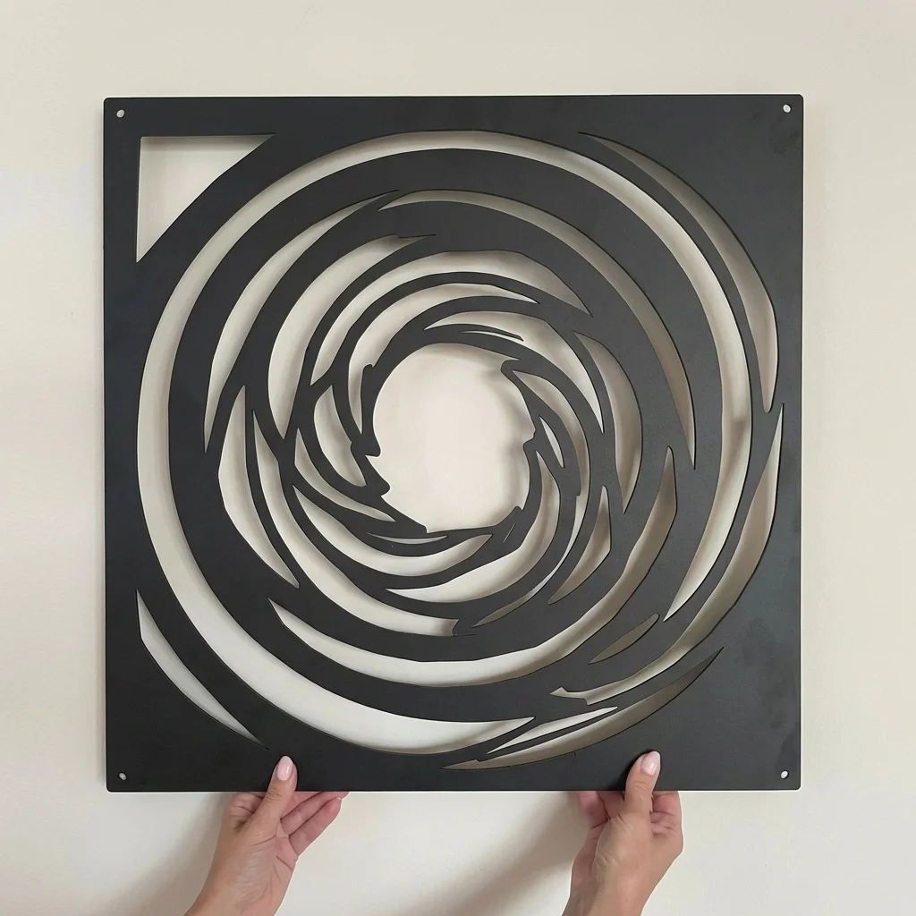 Spiralis 3 spiralne ostrza to nowoczesny panel dekoracyjny metalowy z dynamicznym motywem spiral. Wzór jest inspirowany ruchem i energią wiru, a precyzyjne cięcie laserowe daje lekkość oraz efekt głębi na ścianie – idealny do wnętrz nowoczesnych, loftowych i industrialnych.