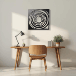 Nowoczesne metalowe dekoracje ścienne z motywem spiral i wirów. Dynamiczne, geometryczne wzory nadają wnętrzu energii i niepowtarzalnego charakteru.