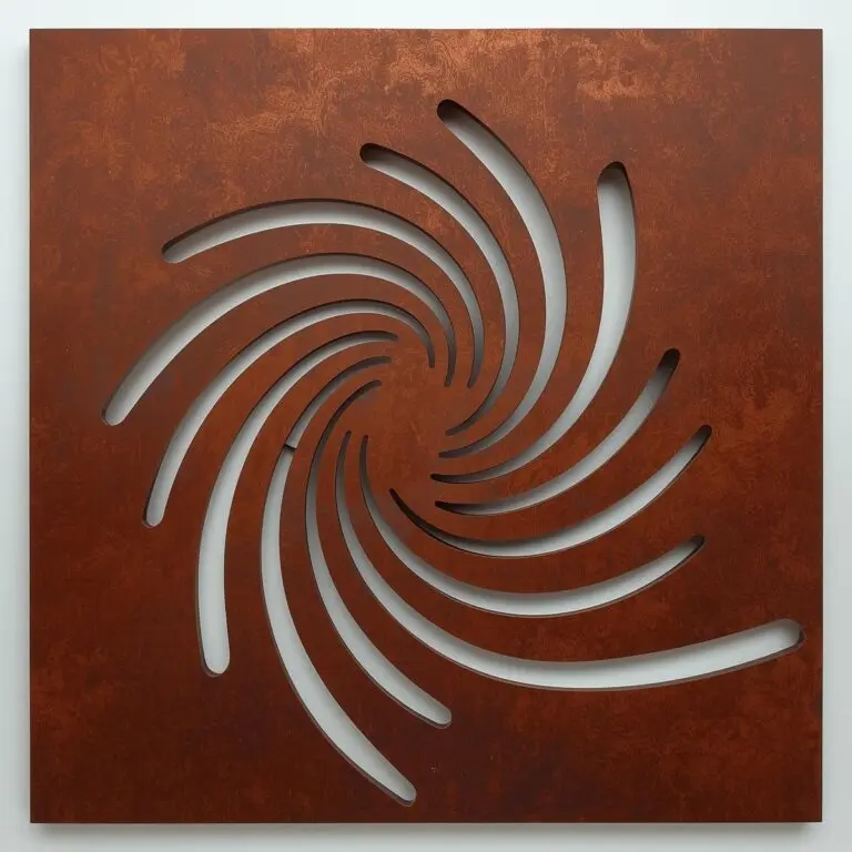 Spiralis 5 spiralny rytm – panel dekoracyjny metalowy z motywem spiral i wirów. Rozmiary 50×50 lub 80×80 cm. Corten, proszkowa biała/czarna/złota lub stal nierdzewna. Darmowa dostawa w Polsce.