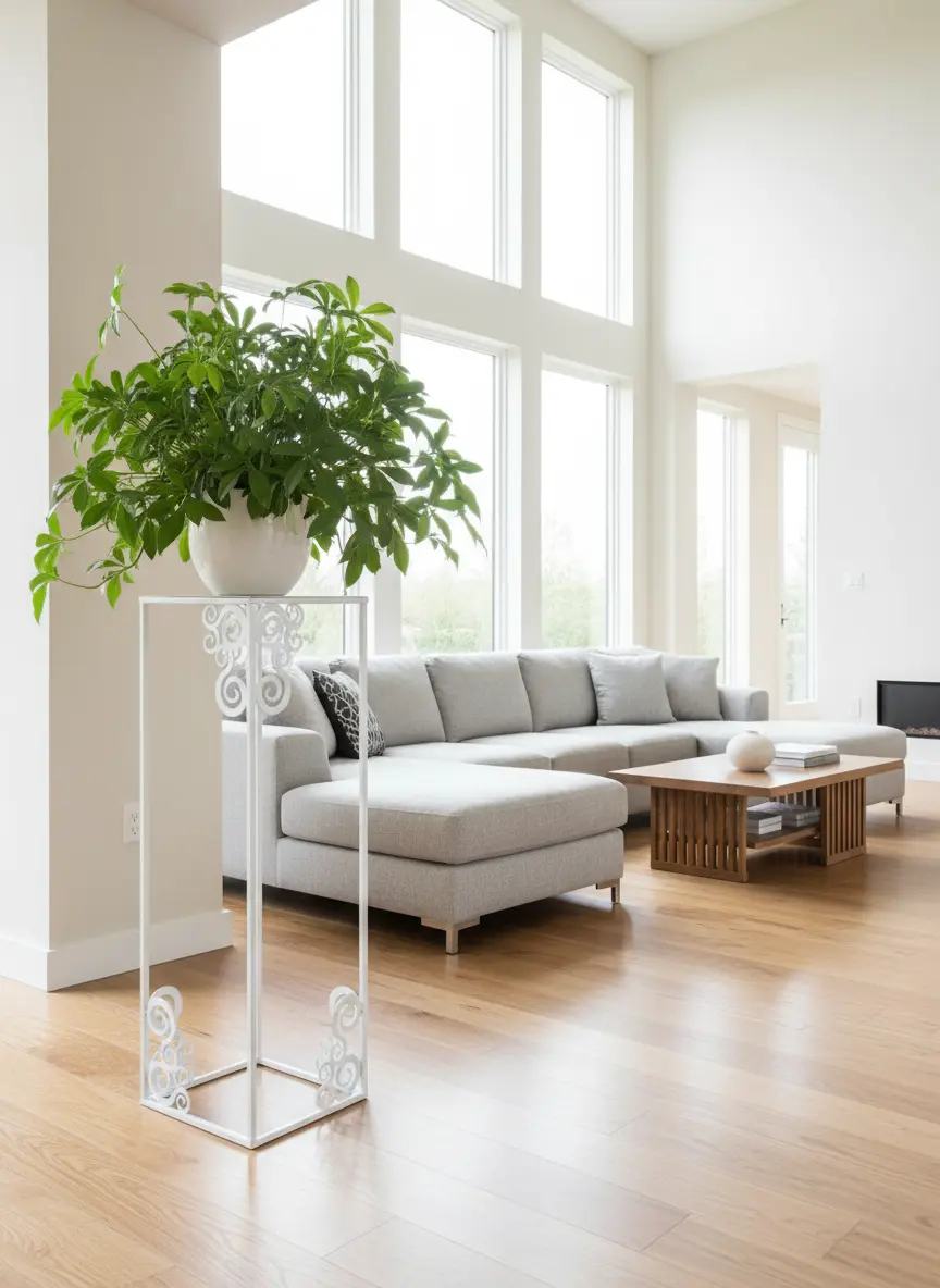 Stojak Metalowy na Kwiaty Ozdobny Biały to wyjątkowy mebel dekoracyjny, który łączy funkcjonalność z estetyką. Wykonany z trwałej stali, malowany proszkowo na biało, idealnie komponuje się z jasnymi wnętrzami, wprowadzając do nich świeżość i lekkość.