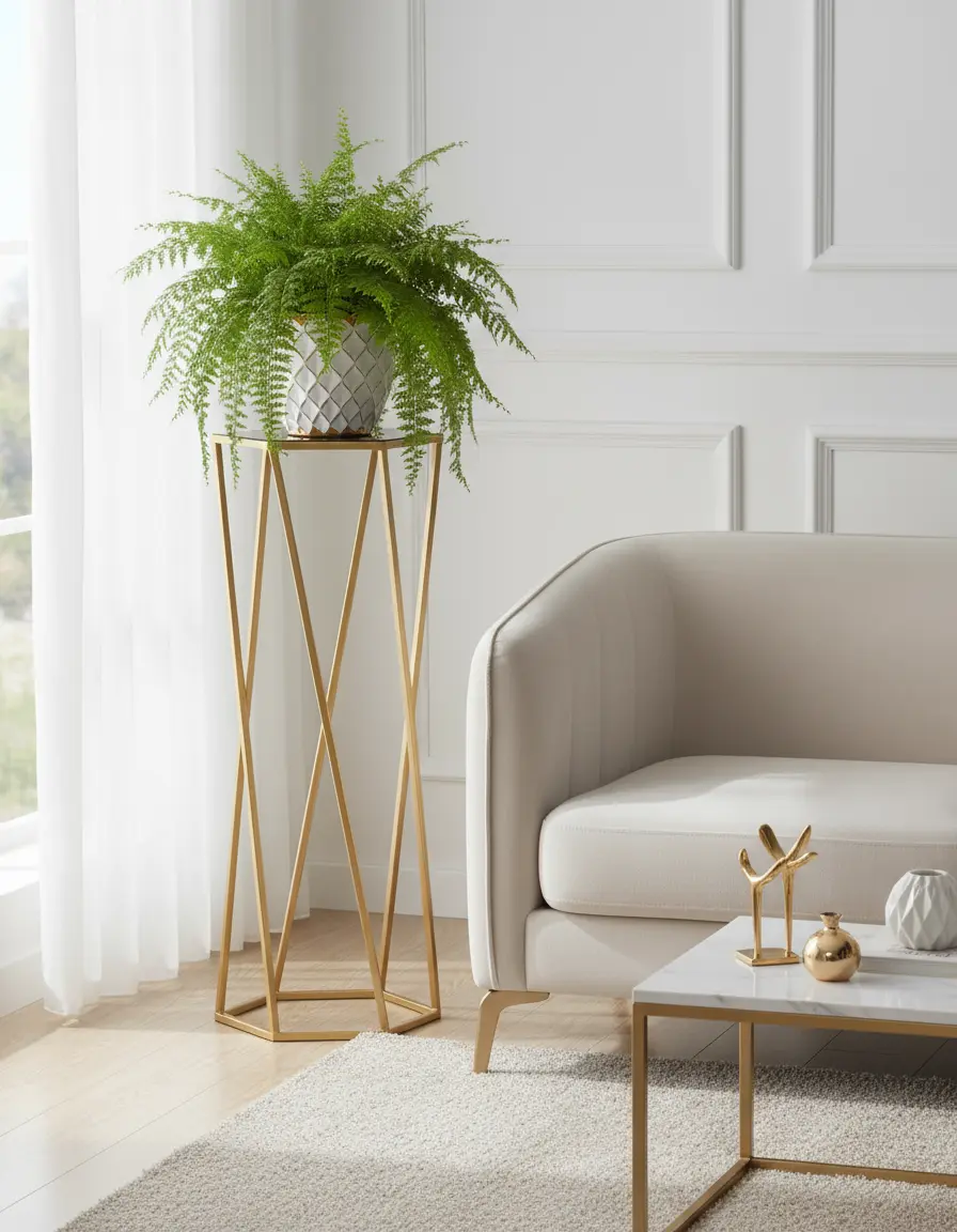 Wykonany z solidnej stali i malowany proszkowo, stojak łączy w sobie trwałość z estetyką. Dzięki stabilnej podstawie z łatwością utrzyma zarówno mniejsze, jak i większe donice, stając się wyjątkową ozdobą salonu, jadalni czy biura.