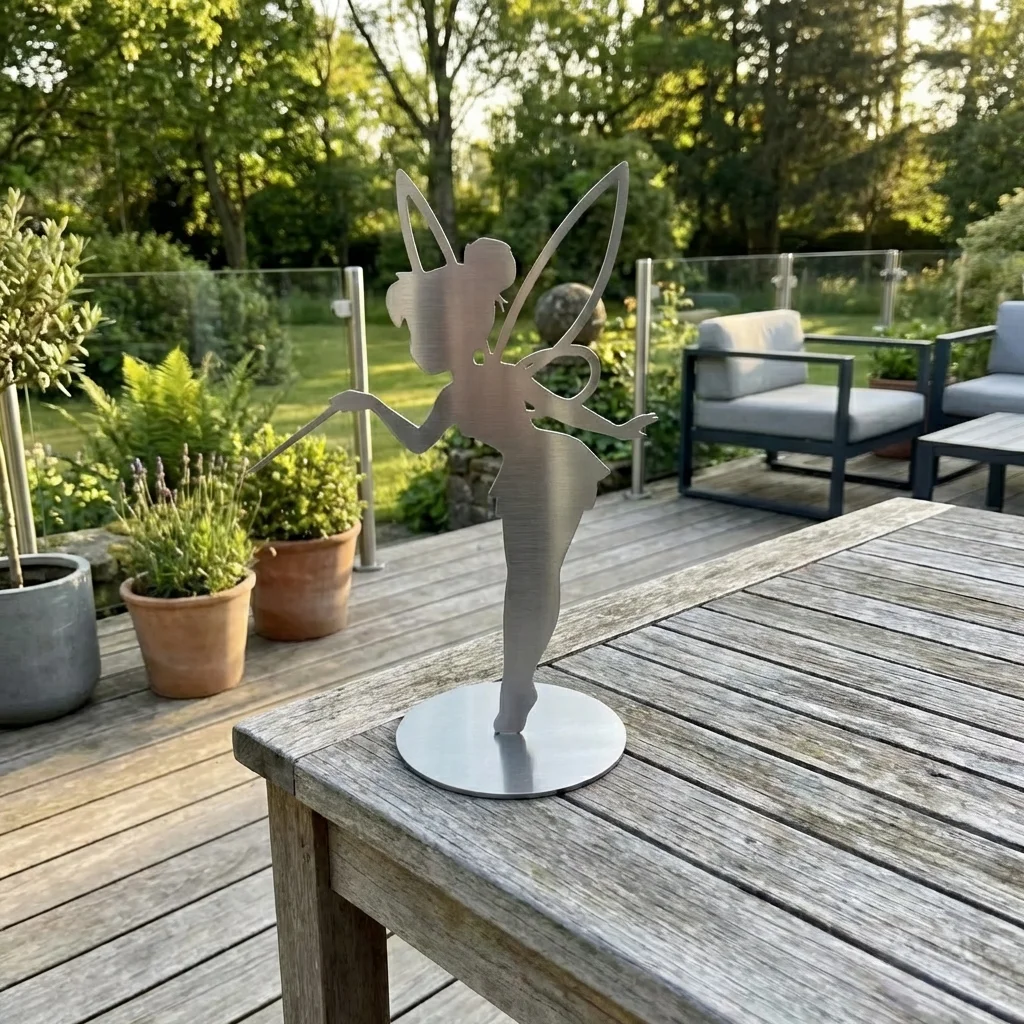 Metalowa dekoracja wolnostojąca wróżka „Szept Magii” – elegancka, smukła rzeźba do salonu, gabinetu i wnętrz premium. Idealna na komodę, konsolę lub półkę. Rozmiary: 11×15 cm, 15×20 cm, 18×25 cm. Wykończenia: corten (rdzawy), czarny, biały, złoty lub stal nierdzewna polerowana/szczotkowana. Darmowa dostawa na terenie Polski.