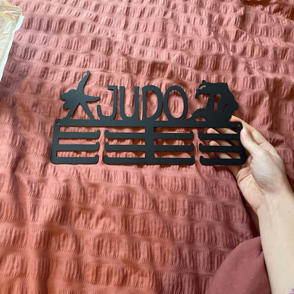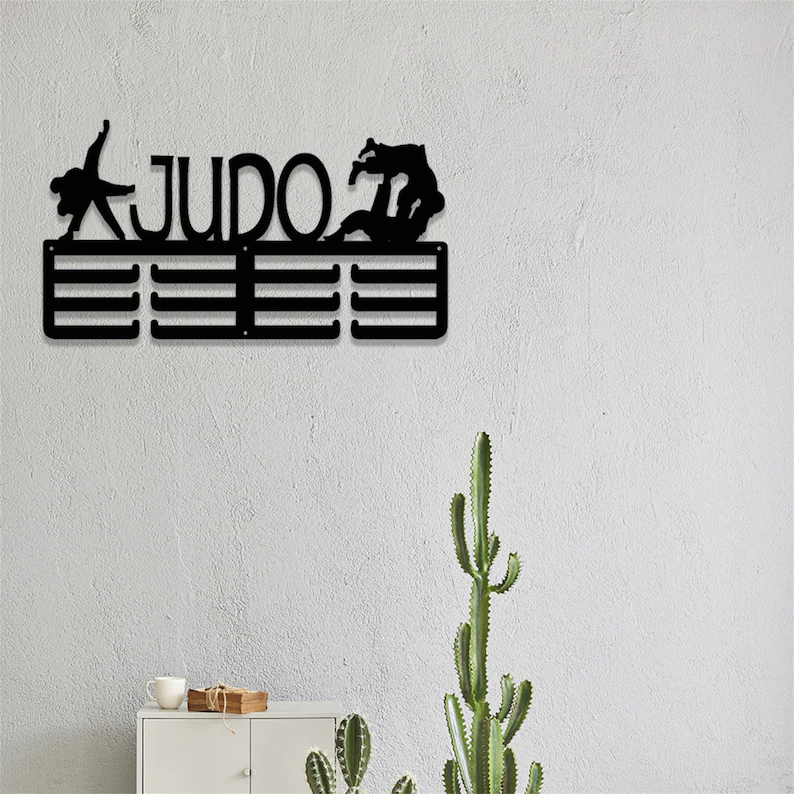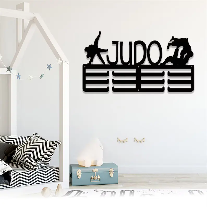 Wieszak na medale Judo to funkcjonalna dekoracja ścienna zaprojektowana z myślą o osobach trenujących judo. Umożliwia wygodne i estetyczne przechowywanie medali zdobytych podczas zawodów, turniejów i treningów, porządkując sportowe osiągnięcia w jednym miejscu.