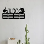 Metalowy wieszak na medale Judo przeznaczony do estetycznej ekspozycji sportowych osiągnięć. Wykonany z trwałej stali, malowany proszkowo na czarny mat. Dostępny w trzech rozmiarach – idealny do pokoju dziecka, nastolatka lub dorosłego sportowca. Darmowa dostawa na terenie Polski.