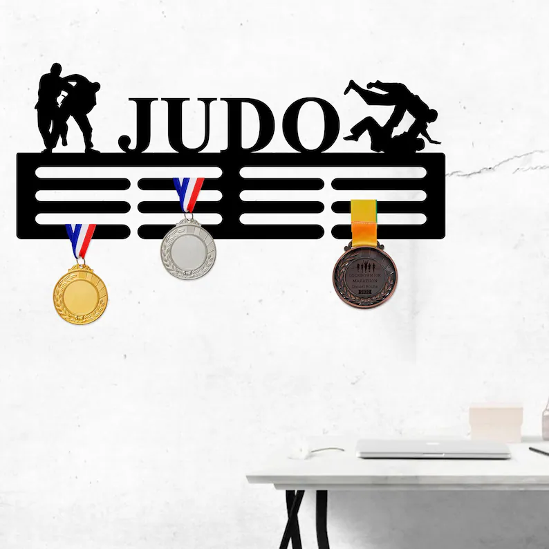Wieszak na medale Judo to funkcjonalna dekoracja ścienna zaprojektowana z myślą o osobach trenujących judo. Pozwala w estetyczny sposób wyeksponować medale zdobyte podczas zawodów, turniejów i treningów, porządkując sportowe osiągnięcia w jednym miejscu.