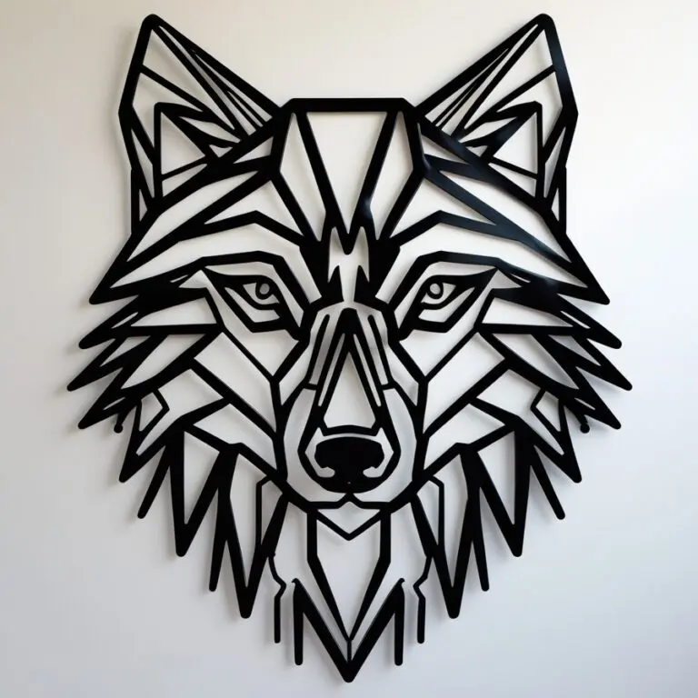 Wolf Geo 2 to dekoracja ścienna metalowa przedstawiająca głowę wilka w nowoczesnym, geometrycznym stylu. Precyzyjne cięcie laserowe zapewnia ostre linie i świetny efekt na ścianie – w salonie, gabinecie, biurze czy w przestrzeni komercyjnej.