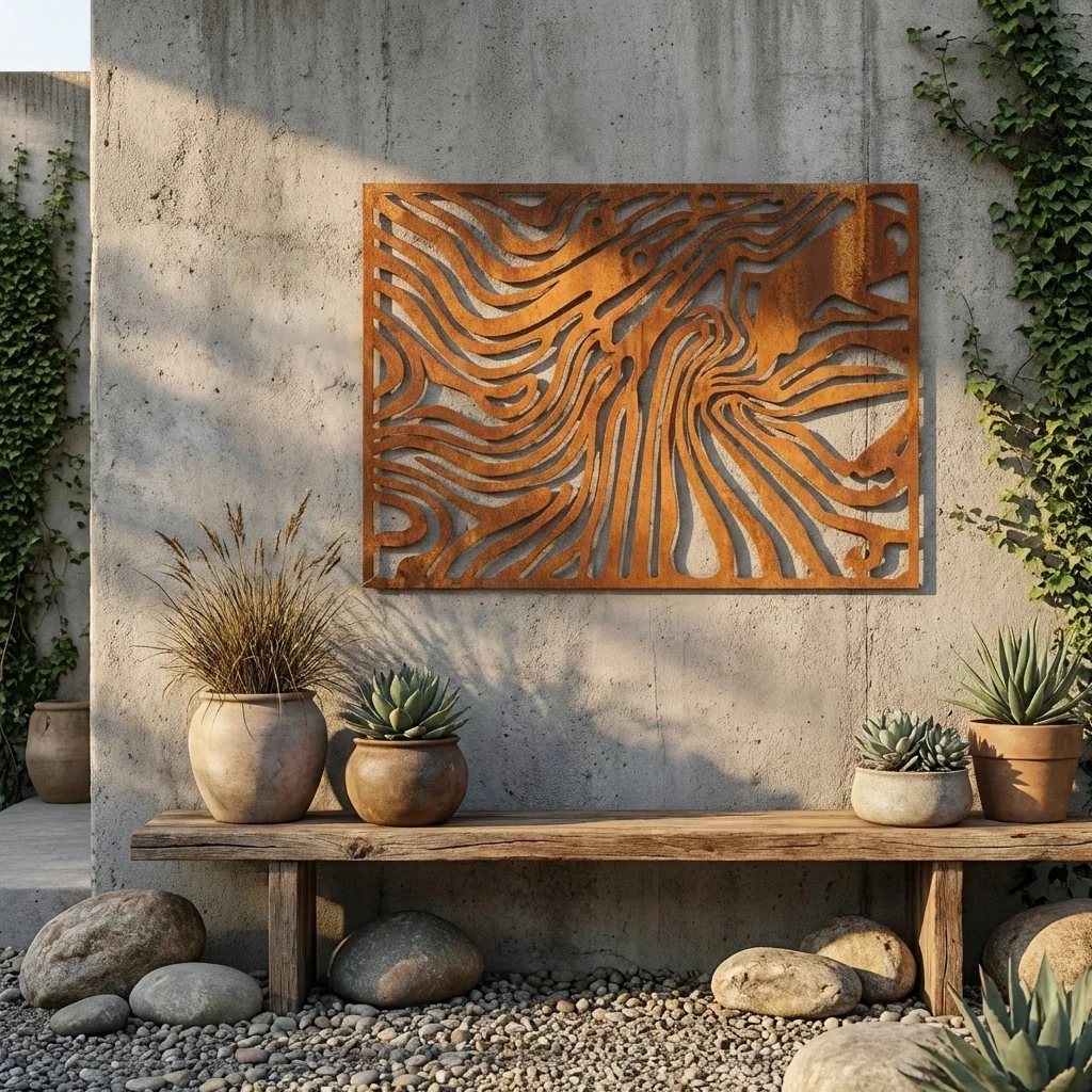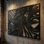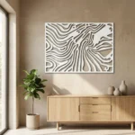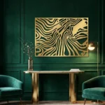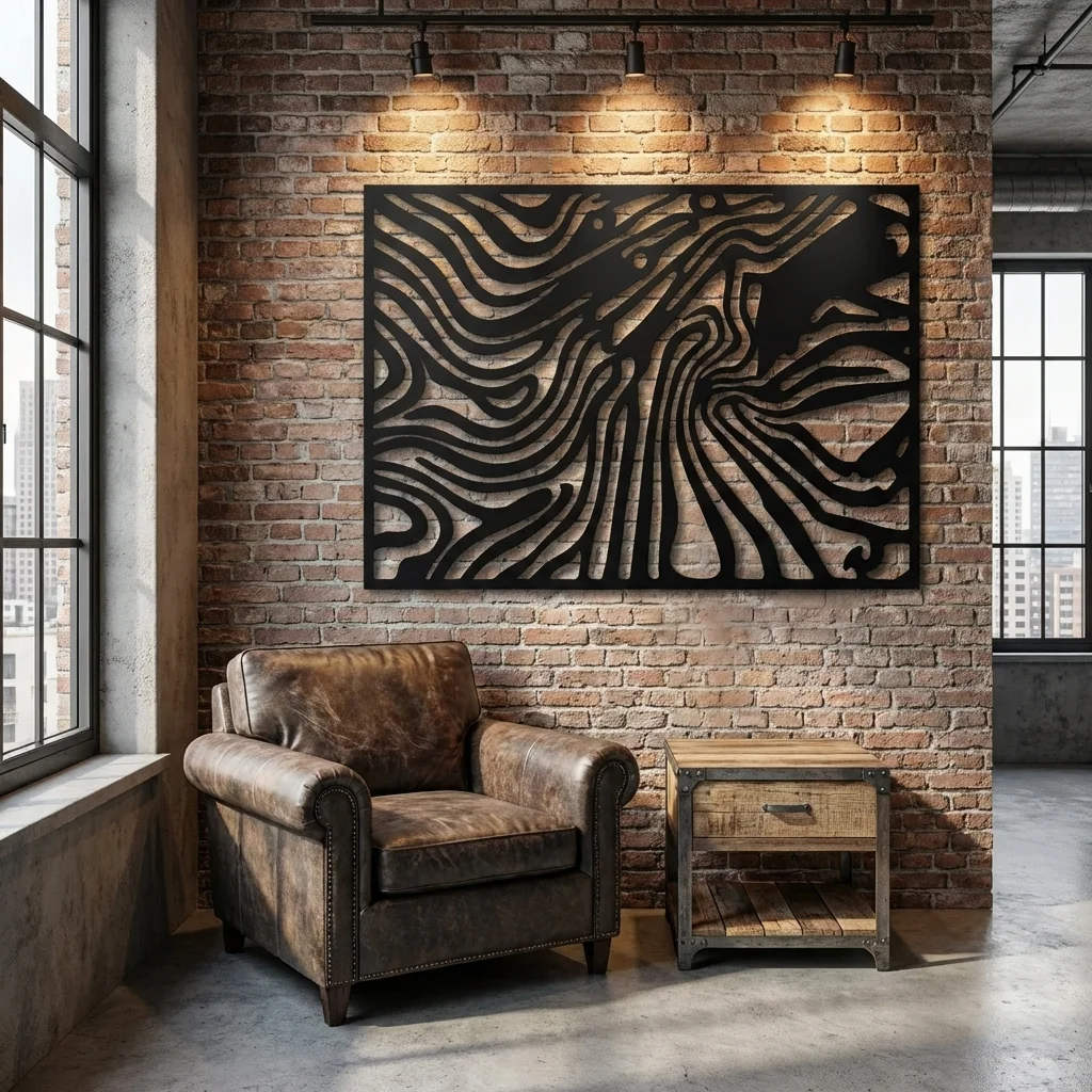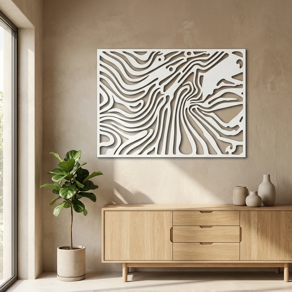 Woodflow Panorama to nowoczesna metalowa dekoracja ścienna inspirowana płynnym układem słojów drewna i organicznych linii natury. Szeroka, panoramiczna forma sprawia, że wzór doskonale prezentuje się na większych ścianach, budując elegancki, designerski akcent we wnętrzu. To dekoracja dla osób, które cenią nowoczesny minimalizm, rytm linii i szlachetne materiały.