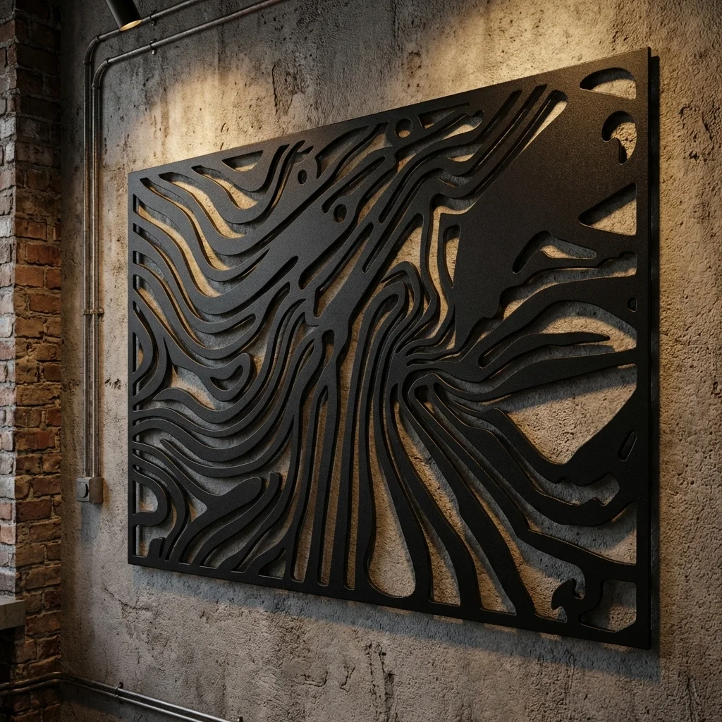 Woodflow Panorama to nowoczesna metalowa dekoracja ścienna inspirowana płynnym układem słojów drewna i organicznych linii natury. Szeroka forma i designerski charakter sprawiają, że pięknie prezentuje się jako mocny, elegancki akcent wnętrza. Darmowa dostawa.