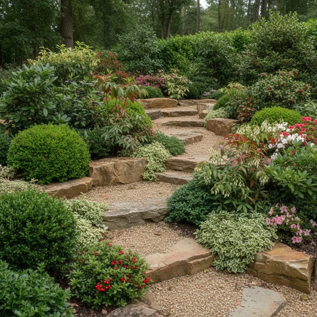 Tip: Łącz krzewy strukturalne (bukszpany, ostrokrzewy) z roślinami o barwnych liściach (kiścienie, pierisy), by mieć efekt przez cały rok.