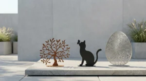Na zewnątrz krzyż może być elementem uporządkowania przestrzeni: na elewacji, ścianie przy tarasie lub w strefie wejścia. Jeśli rozważasz, czy metal i corten nadają się na zewnątrz, zobacz: stal i corten na zewnątrz – praktycznie.