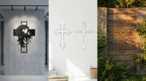 Jeśli szukasz gotowych wzorów, zobacz naszą kategorię: krzyże metalowe na ścianę. A jeśli interesują Cię też inne elementy do aranżacji ściany, sprawdź: dekoracje ścienne metalowe.